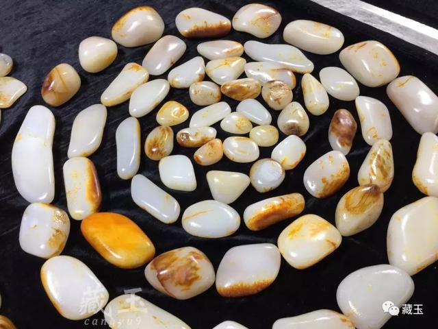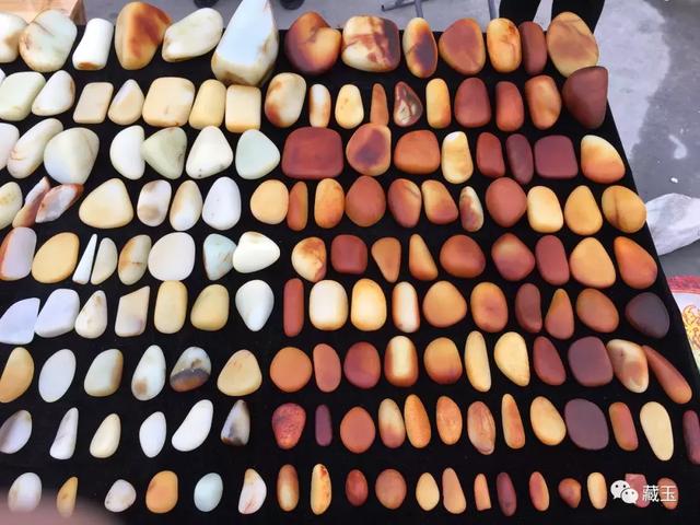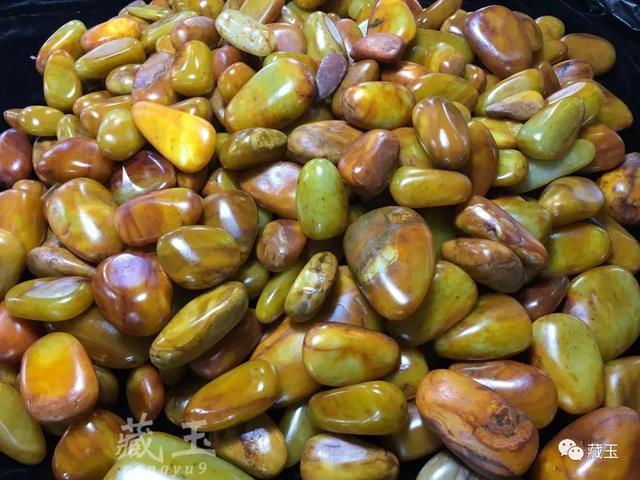 ▲這一堆很差的籽料,染成這樣,把玩的話估計(jì)能掉一手的顏色。