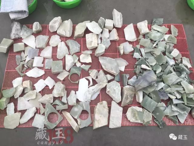 ▲這是碧玉的原料。這些邊角料,一般都是拿回去磨珠子。