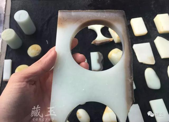 ▲上面我們看到了那么多鐲子,你就知道會(huì)有多少手鐲芯了。這些鐲芯料很厚,拿回去可以做把件。但都不怎么好,要么顏色差,要么料子松。