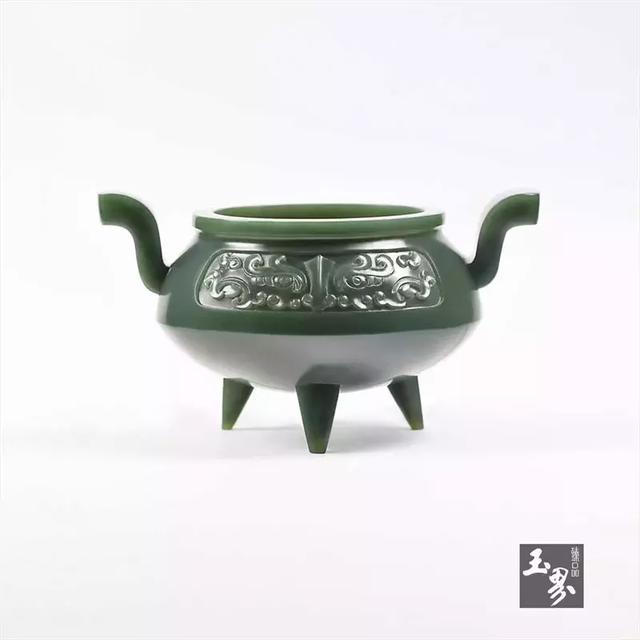 ▲ 青玉-饕餮紋雙耳香爐 | 玉器編號:153570