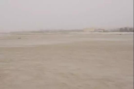 七月中旬的玉龍喀什河,濤濤洪水流經400多米寬的和田市大橋。