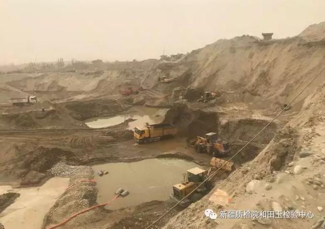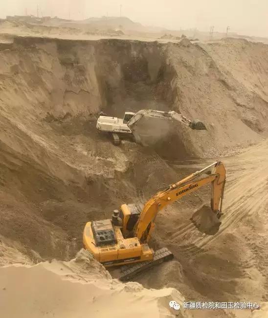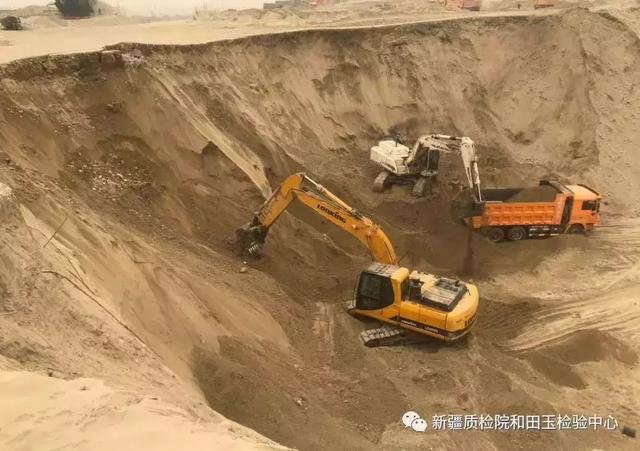 到了礦點(diǎn),放眼望去,到處都是挖掘機(jī),鏟車,自卸卡車,一片繁忙的景象。地面被挖出一個個大坑,這一礦區(qū),地面覆沙土的厚度大約在8-12米深不等,要挖和田玉玉石,首先要把表層的土清運(yùn)走,工程浩大,下面有多少和田玉,好的能有多少,完全沒有概念,我感覺能挖到一塊好玉的概率,跟中彩票差不多。