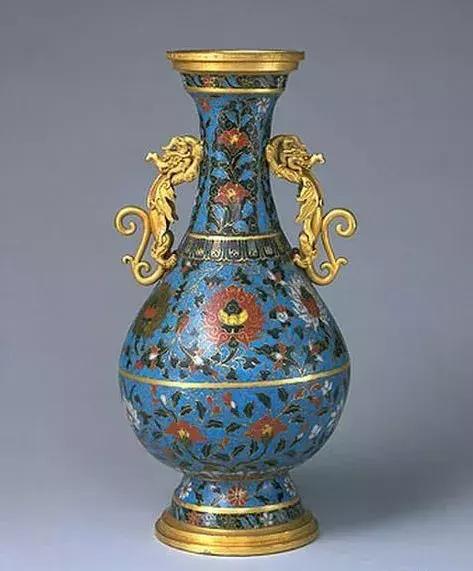 ▲ 明朝景泰年掐絲琺瑯纏枝蓮龍耳瓶(