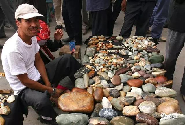 ▲周末集市上的商販,面前是琳瑯滿目的各色石料。