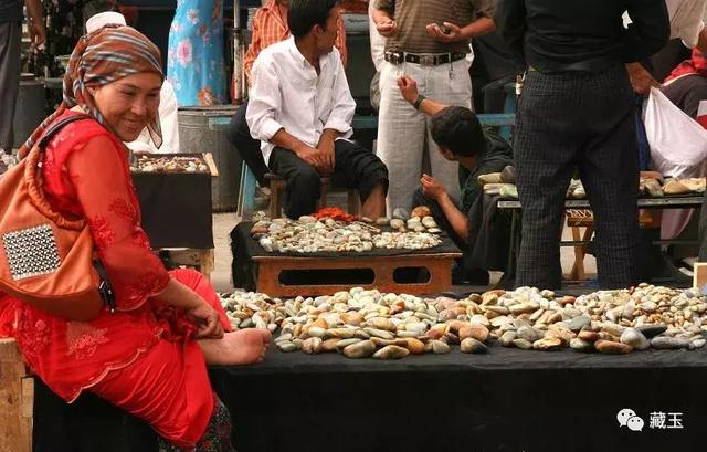 每逢周末,在和田市街頭的大巴扎前,便有熙熙攘攘的玉石集市,面目滄桑的采玉人懷揣辛苦收集來的各色石料擺攤出售。