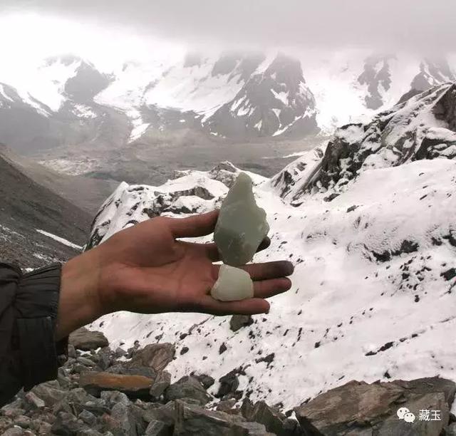 ▲諾爾列特從冰洞里采到的玉石,在雪山冰川映襯下,彰顯著它們的來之不易。