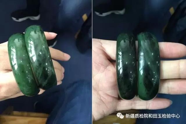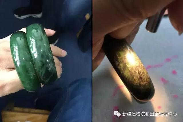 附圖(普通碧玉手鐲與含大量角閃石礦物的手鐲對(duì)比)