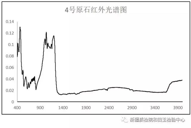 為了驗證我們的推測,我們應用紅外光譜儀來幫助我們進一步分析確定。對比原石的紅外光譜圖與標準礦物圖譜,我們知道,1號原石為和田玉,2號原石為和田玉,3號為是蛇紋石質玉,4號原石為長石及石英巖共生體。這與我們之前的判斷基本一致,所以多看多觀察多總結永遠是必要的。