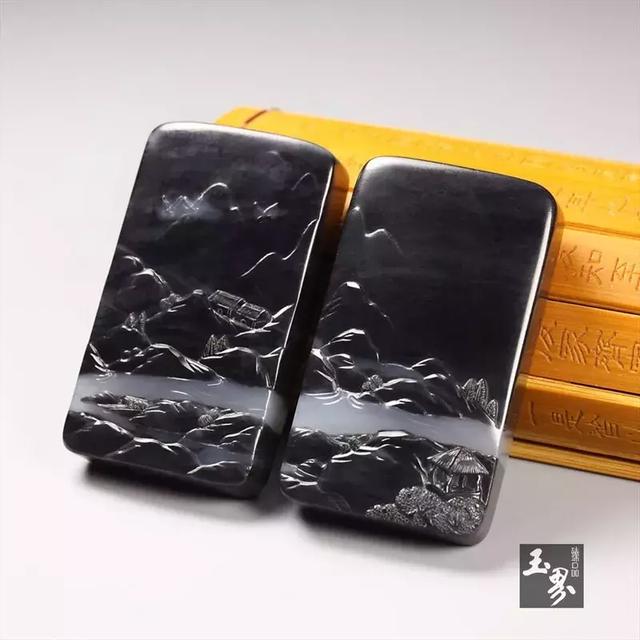 ▲墨玉山水對牌-孤舟逐云 | 玉器編號:160504