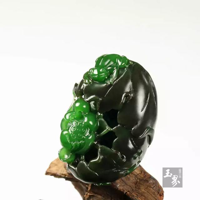 獨特的創(chuàng)意,將青蛙與荷塘結(jié)合起來,將它們賴以生存的環(huán)境濃縮到玉石之上,既讓人看到了生命的靈性,也看到了自然和諧相處的感覺。看著它們靈動和呆“萌”的可愛模樣,你的心是不是也都萌化了?