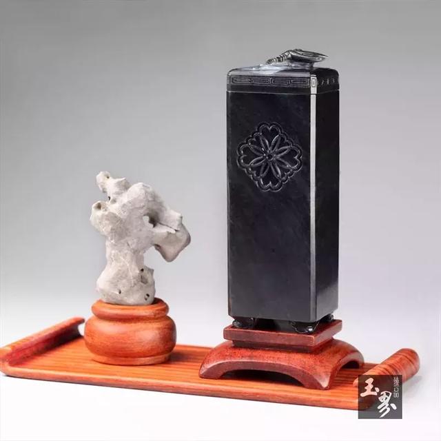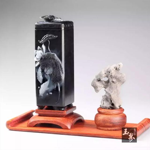 ▲墨玉子料-荷韻香筒 | 玉器編號:165740