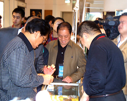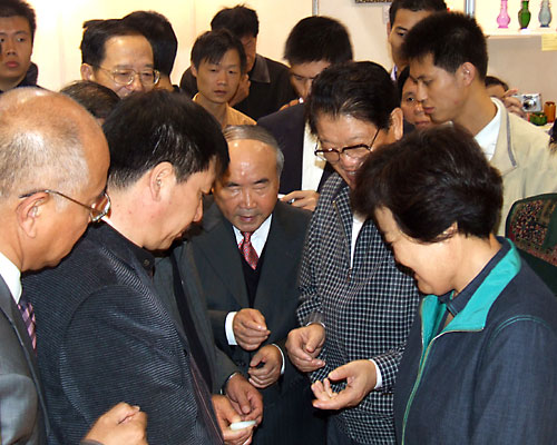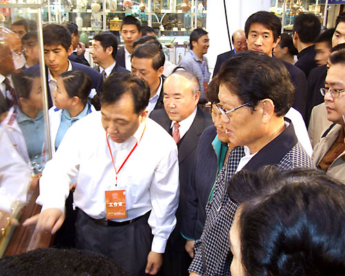 作為中國(guó)工藝美術(shù)協(xié)會(huì)名譽(yù)理事長(zhǎng)的全國(guó)人大常委會(huì)副委員長(zhǎng)李鐵映10月29日上午到了博覽會(huì)現(xiàn)場(chǎng),在一號(hào)展館3號(hào)展廳參觀完中工美拍賣(mài)公司的《圓明園金玉大水法》后,專(zhuān)門(mén)來(lái)到了新疆展位,對(duì)新疆的民族工藝品和田玉雕作品給予了很高的評(píng)價(jià),肯定了新疆在工藝美術(shù)事業(yè)中取得的成績(jī),同時(shí)也從意識(shí)形態(tài)和藝術(shù)美學(xué)的高度為中國(guó)工藝美術(shù)事業(yè)提出了更高的要求。