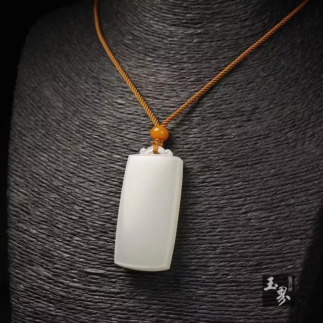 在如今的玉雕市場上,素簡的掛飾大小適中,既可佩于胸前又可佩于腰間,并且男女皆宜。它是曲線與直線巧妙組合的藝術,雖無華麗外表,卻以其樸素的自然形態(tài)訴說著自己獨特的造型語言。素面之上,略加仿古紋飾的點綴,使得牌面層次豐富,藝術感染力十足,令其博得了“方寸之間見天地之闊”的美譽。深受藏者的喜愛。