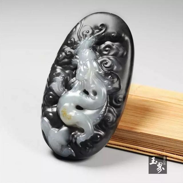 ▲墨玉子料牌-云龍攬月 | 玉器編號:165514