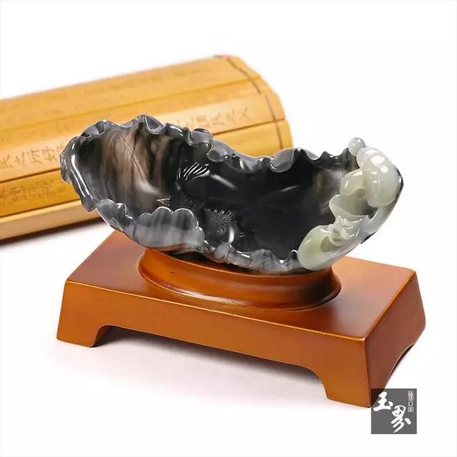 ▲墨玉子料-墨荷香插 | 玉器編號:153299