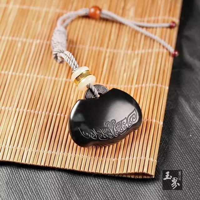 ▲墨玉子料-祥云牌 | 玉器編號:165625