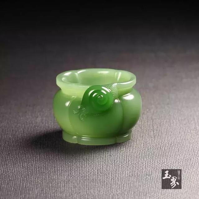 ▲碧玉-蝸牛海棠香爐 | 玉器編號:162479