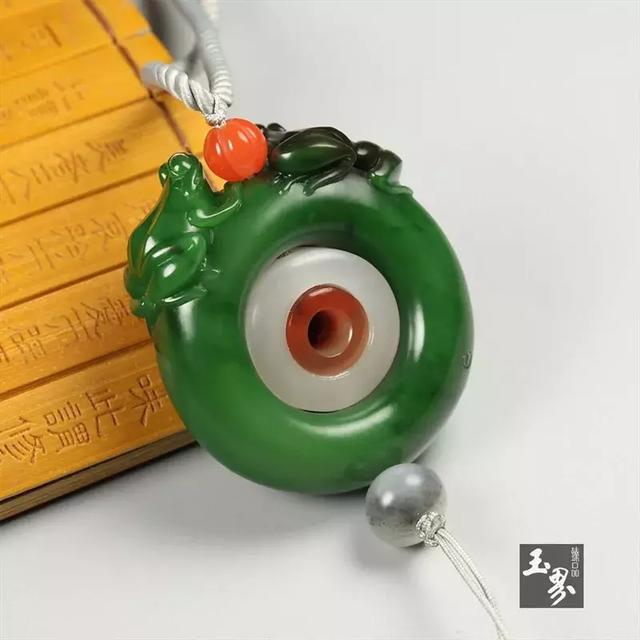 ▲碧玉巧雕掛件-蛙趣路路通 | 玉器編號:158558