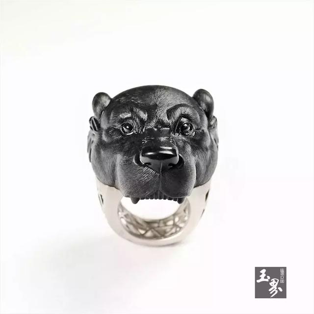 ▲(925銀)墨玉子料-熊首大戒 | 玉器編號:163809