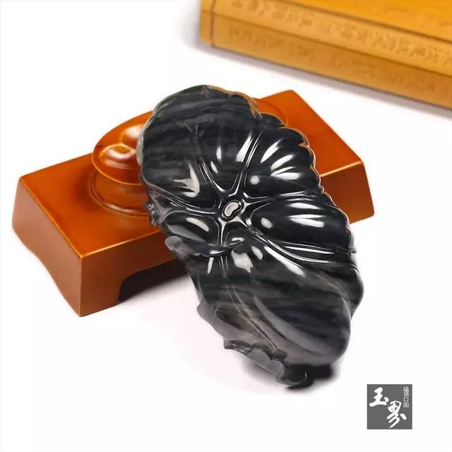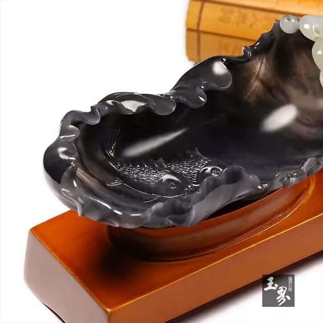 ▲墨玉子料-墨荷香插 | 玉器編號:153299