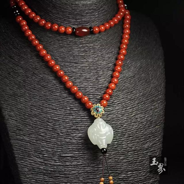 ▲白玉子料、紅瑪瑙-福臨項鏈 | 玉器編號:163255