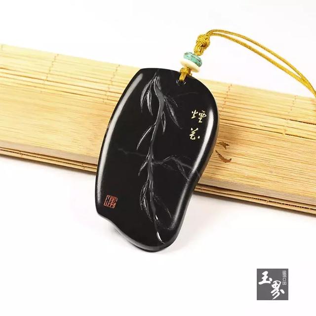 ▲墨玉子料牌-水墨荷花 | 玉器編號(hào):153138