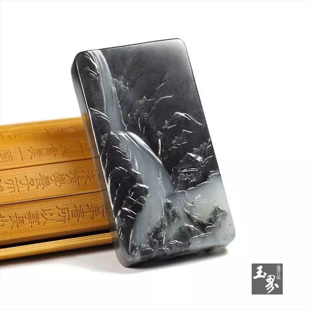▲墨玉山水牌-白虹飲澗 | 玉器編號(hào):156431