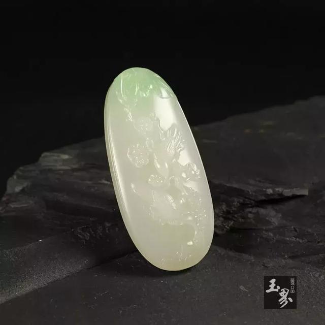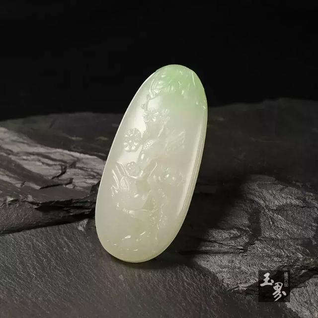 ▲翠青白玉牌-喜鵲登梅 | 玉器編號(hào):148978