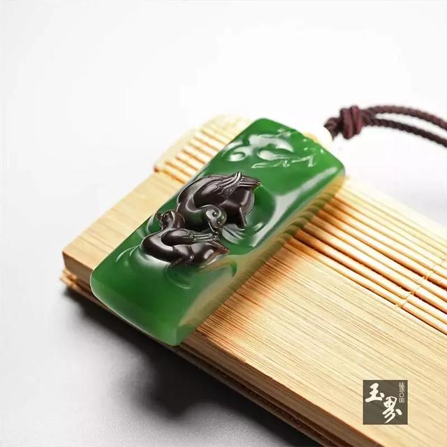 ▲巧雕碧玉牌-春江水暖 | 玉器編號:165627