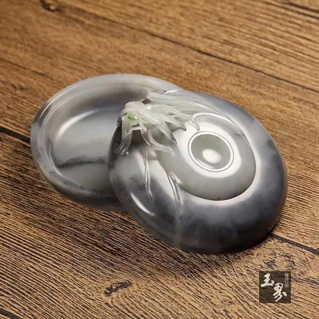 ▲墨玉子料印泥盒-水草蜻蜓 | 玉器編號:160503