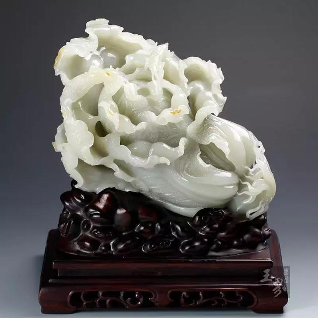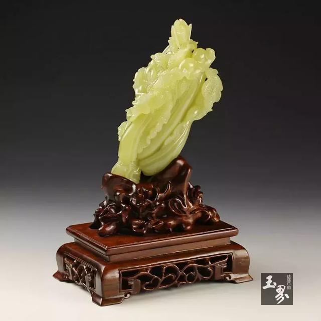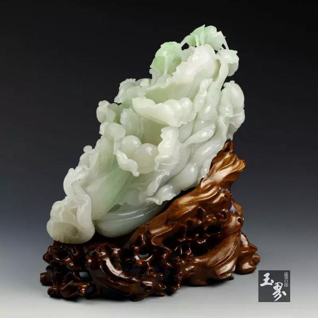 白菜,亦稱菘,為百菜之首,有包心白菜與散幫白菜兩種,而在玉雕作品中我們看到的白菜基本上是以包心白菜為創作原型。據說,包心白菜自宋代以后培育出現,歷代畫家有很多以白菜為題材的繪畫作品傳世。現藏臺北故宮博物院的玉雕“白菜蟈蟈”則為包心白菜,這就說明當時白菜在中國人心目中的地位。民間俚語有云“百菜不如白菜好,諸肉不如豬肉香”。也反應了百姓在日常生活中與白菜密不可分的關系。