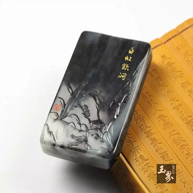 ▲墨玉山水牌-白虹飲澗 | 玉器編號:156431