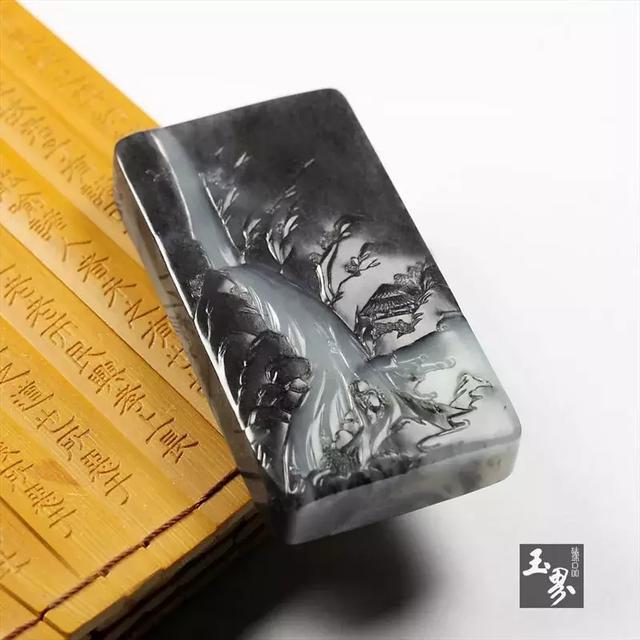 ▲墨玉子料-水墨山水牌 | 玉器編號:145244