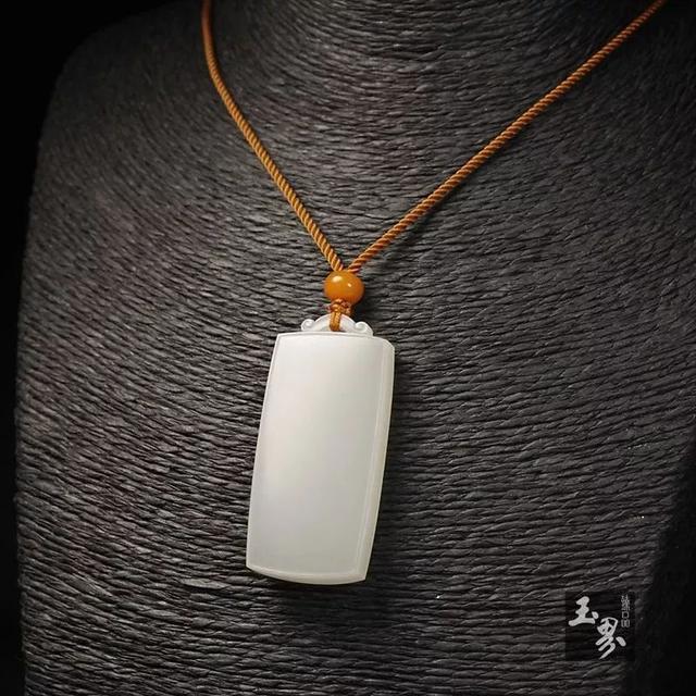 回歸到玉雕藝術層面,素面牌的直線處理可展示力量之美,帶給人強烈的視覺沖擊力,而牌形曲面富于變化,可展示柔和韻律之美,曲直的相互交合能讓作品不顯單調而更具層次變化和韻味。猶如太極般綿里藏針,在圓潤飽滿中見陽剛之美。