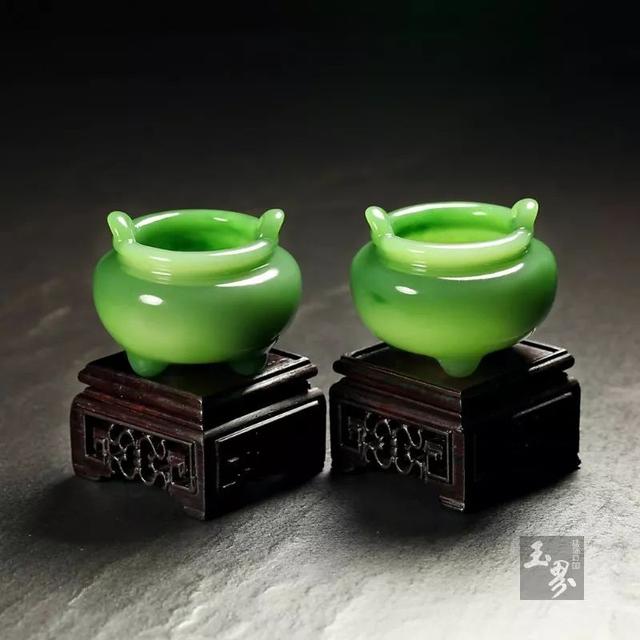 ▲碧玉-小宣德爐(對(duì)) | 玉器編號(hào):129801