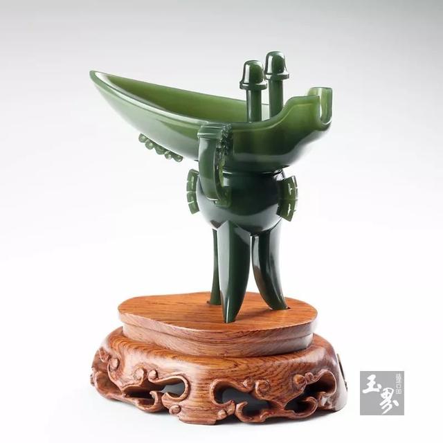 單純從價值上看,青玉雖不如羊脂玉、白玉,但是青玉卻有其自身特點:往往比較塊度較大、質地細膩、溫潤、油性好,同時,有一部分青玉由于致密交織結構,具有非常好的韌性,是制作薄胎器皿的重要原料。另外用青玉來表現青銅文化也讓人覺得恰如其分。青玉不但和青銅器的主色調相吻合,而且能把青銅器的歷史厚重感與滄桑感表現出來。