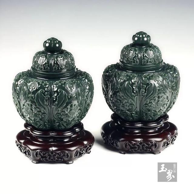 ▲青玉-花卉紋飾瓜棱對罐 | 玉器編號:140113