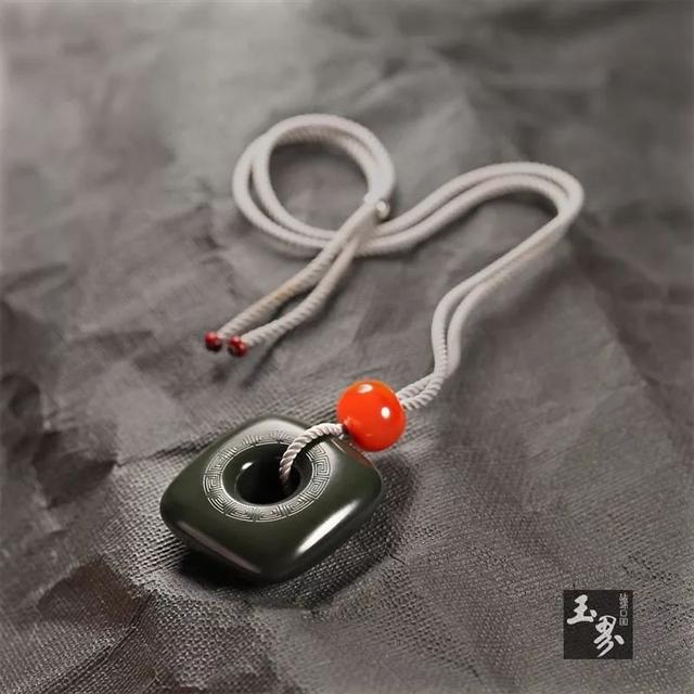 在市面上大多數玉牌穿洞都是粗糙的,直直的,對于是否具有美感,是否貼合題材,洞邊緣的棱角是否會磨礪配繩等等,都毫不在乎,仿佛這個孔就只是一道不可缺少的工序,用機器打通了就好。其實孔的作用不僅僅只是利于佩戴的需要,它已逐漸成為玉器不可分割的重要組成部分。只有與玉雕主題相輔相成的孔,才更能渲染出作品整體的意境美,才能讓人“以孔”窺探其內涵真意。