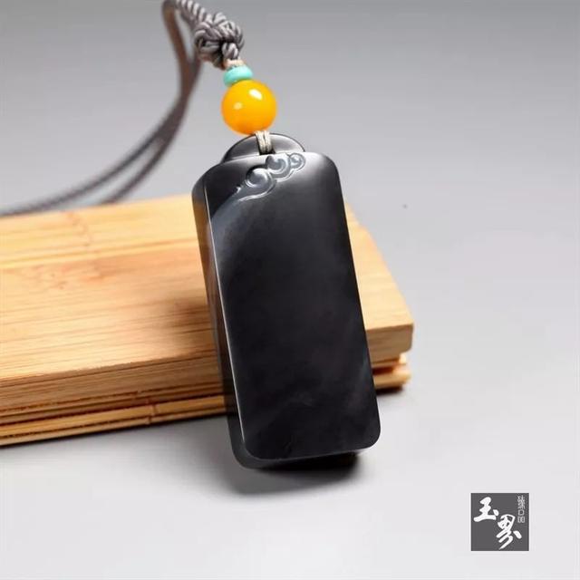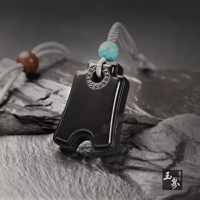 在中國傳統(tǒng)五行學(xué)說中,黑色屬水,水能聚財(cái),黑色避邪所以護(hù)身。因此墨玉被玉石設(shè)計(jì)雕刻創(chuàng)作的師傅們經(jīng)常拿來做匯聚財(cái)?shù)撈桨布榈脑⒁獾氖走x材料。高品質(zhì)的墨玉材料難找,而雜質(zhì)極少且色澤均勻的墨玉基本上都會做成無事牌。純凈深邃的墨色,凝成了厚重寧靜的平安無事牌,素面無雕,邊角處規(guī)整的棱面,在自然光下漆黑如墨,深沉而神秘。它就像成功男人的影子,在億萬年歲月打磨下,散發(fā)深邃黝黑的光芒,那是飽經(jīng)歲月磨礪的堅(jiān)韌!