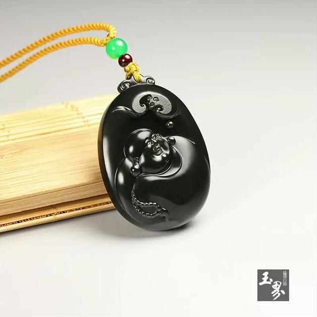▲黑青玉子料牌-佛引福來 | 玉器編號:161888