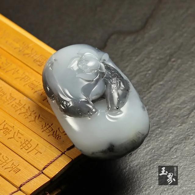 對于塊度比較輕薄,弧度不一的原料,魚題材是最能展現其特點的!因為有的原料開采出來就有一定的弧度,和魚的身形及其神似,在后天挖臟去綹的過程中,原料漸漸變得有了弧度,再經過玉雕師的精致設計、巧妙雕琢和拋光,就變成了“活靈活現”的小魚。這樣的隨形雕刻更能將魚兒游動時的靈性充分展現出來。其獨一無二性更避免了很多類似“撞衫”的尷尬事情發生。