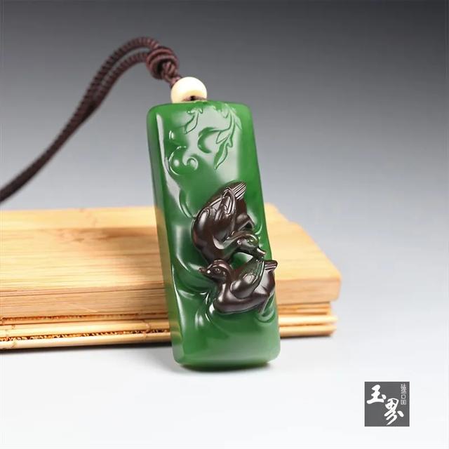 ▲巧雕碧玉牌-春江水暖 | 玉器編號:165627