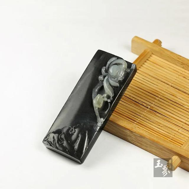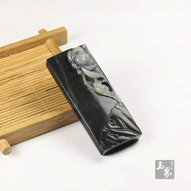 ▲墨玉子料牌-一品清蓮 | 玉器編號:137654
