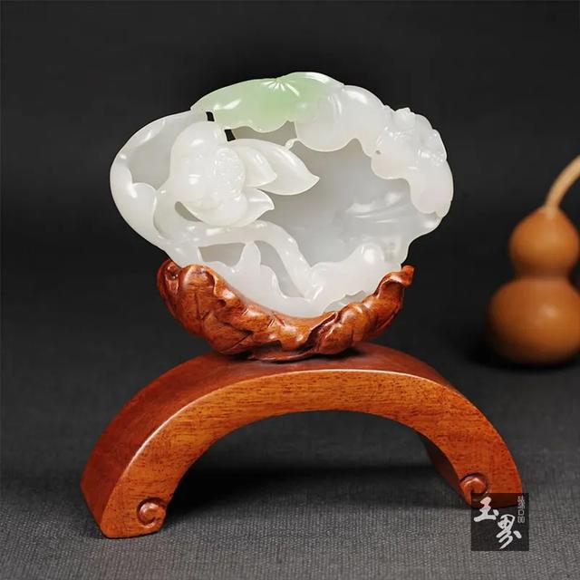 席慕容說:“我愿為蓮,在暮風中輕輕搖曳,塵世的喧囂對我而言,只是過眼煙云……我愿為蓮,嫩白一束寄香,從唐詩宋詞的意境中片片逸出……我愿為蓮,我盈盈的笑語,是漣漣波心里的招搖,牽引著迷離的水草……”而佛說:“花開,只為緣,一朵清凈的蓮,是沉靜的眼,平和的心,寧靜中開。”當詩情與禪意通過雕工凝于美玉,這美玉就成了有生命與靈魂的瑰寶。以玉之溫潤內斂映襯蓮之品性高潔,玉雕與蓮花,可謂珠聯壁合!