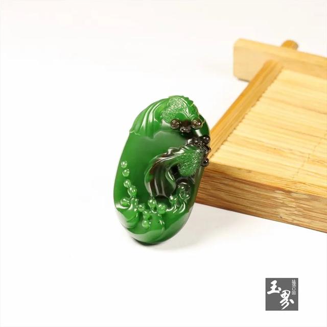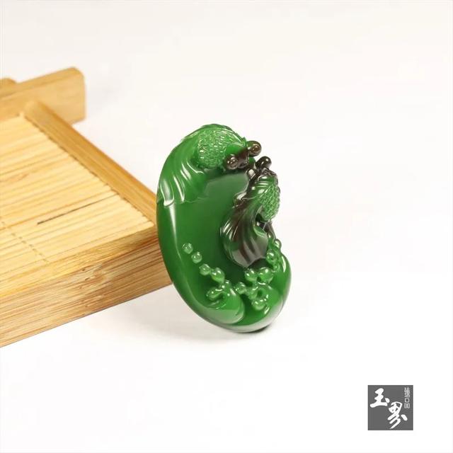 ▲碧玉巧雕掛件-爭上游 | 玉器編號:150293