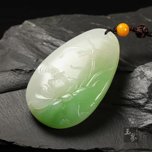 ▲翠青(白玉)掛件-雙魚戲荷 | 玉器編號:167203