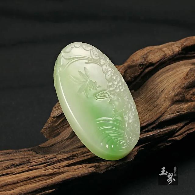 翠青玉既有白玉的凝重內(nèi)斂,又不失翡翠的鮮活靈動,清麗脫俗。和其它顏色的玉種相比,翠青玉好似春日枝頭初生的嫩芽,清新淡雅,鮮活翠嫩,給人一種生機盎然、蓬勃向上之感,因此在翠青作品中春日的花鳥魚蟲題材比較多。