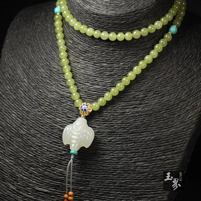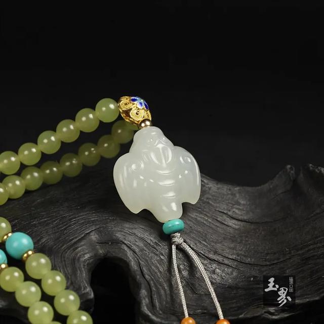 ▲白玉子料、黃玉-福臨項鏈 | 玉器編號:163254