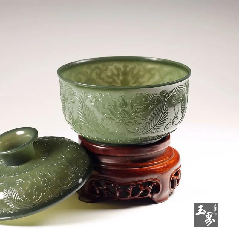 玉雕器皿的造型和裝紋所呈現的美,都離不開合理、對稱、莊重、沉穩的結構和規矩、均勻、和諧的特點。其美觀主要表現在造型、裝飾、紋飾、材質、色澤上。特別是造型上更有增一分則太長,減一分則太短的玄妙之說。瓶瓶罐罐,留著白,虛著懷,總有距離感。茶水不滿上,器身不滿雕,退以為進,守以為攻,器皿的距離感是美,也是分寸和體面。