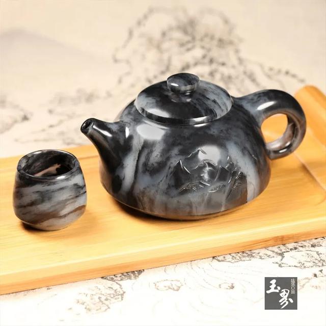▲墨玉子料-山水套壺 | 玉器編號:165577